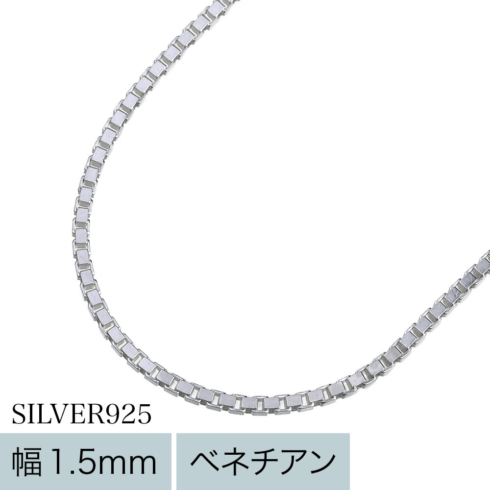 シルバー925 ベネチアンチェーンネックレス メンズ レディース 幅1.5mm 45cm 50cm ボックスチェーン 四角 細め 短め デザインチェーン ネックレスチェーンのみ