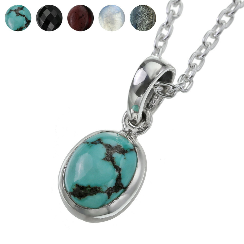 ターコイズ ブラックスピネル ガーネット ラブラドライト ムーンストーンネックレス カボション 小さめ 天然石 メンズ レディース シルバー925 チェーンセット