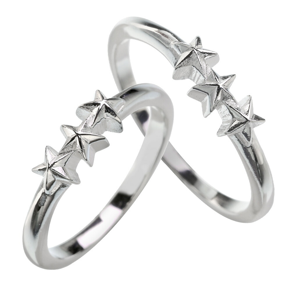 ペアリング 指輪 送料無料 マイクロ スリー スター リング メンズ レディース セット シルバー925 星 シンプル 細め お揃い おそろい ペアアクセサリー カップル