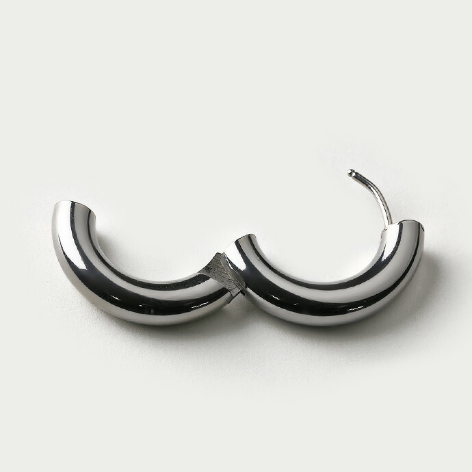 | サイズ | 【共通】 幅約5mm、ポスト太さ18ゲージ(約1.0mm) 【直径20mmタイプ】 直径約20mm、内径約10mm、ポスト長さ約4.5mm(閉じた状態)、重量6g 【直径24mmタイプ】 直径約24.5mm、内径約14mm、ポスト長さ約8mm(閉じた状態)、重量8g |