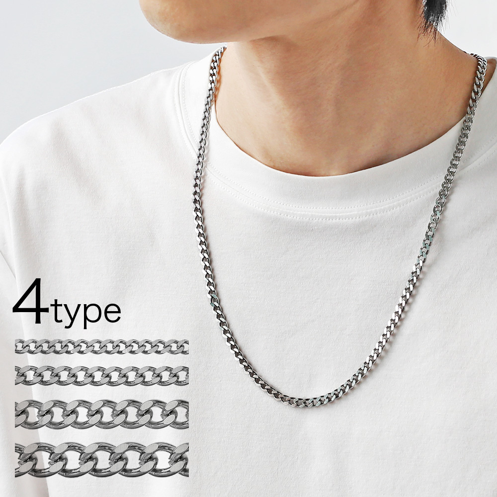 4種のチェーン幅から選べる喜平チェーンのネックレス。素材はアレルギーが出にくいと言われるステンレススチールを使用。汗や汚れによる変色に強く、お手入れも簡単です。シンプルで様々なコーデに合わせられるのが魅力。そのまま着ける他、ペンダントを通したり他のネックレスと重ねづけをするのもオススメです。男性だけではなく女性にもお着けいただけるデザインです。