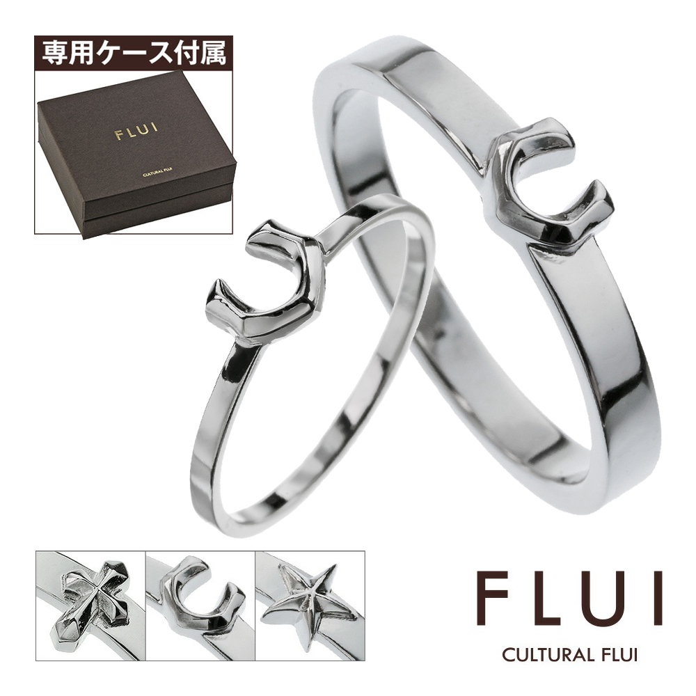 | 説明 | FLUIの人気モチーフであるクロス、ホースシュー、スターをデザインしたシルバー925製のペアリングです。プラチナ等によく用いられる仕法・ロジウムコーティングにより、高級感のある美しい輝きが楽しめます。男性女性それぞれの指に合うリング幅で、普段使いもしやすい上品なリングです。 |