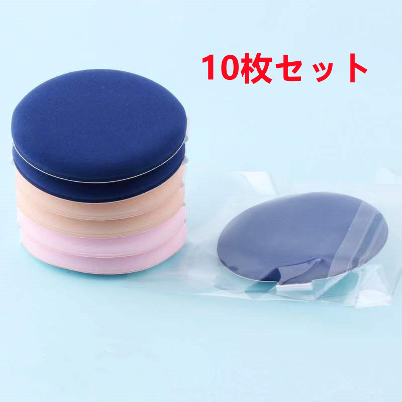 クッションファンデパフ 10枚セット直径約5.4cm厚さ約5.4mm色 5色2枚ずつクッションファンデーション、リキッドファンデーション用パフになります。表面がツルツルとしたパフになっておりますので液体ファンデーションを塗るのに適したパフになります★ノーブランド商品です。