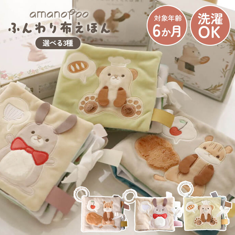 amanoppo ふんわりえほん りすくんのさくらんぼ探し こぐまくんの焼きたてパン うさぎたちのお茶会 あまのっぽ 布絵本 選べる3種 洗濯可 絵本 お出かけ 幼児教育