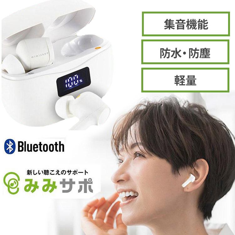 集音器 ワイヤレス イヤホン型 みみサポ KE-SH1MWH Bluetooth対応 超軽量 防水 防塵 ストレスフリー 両耳 プレゼント ギフト お祝い