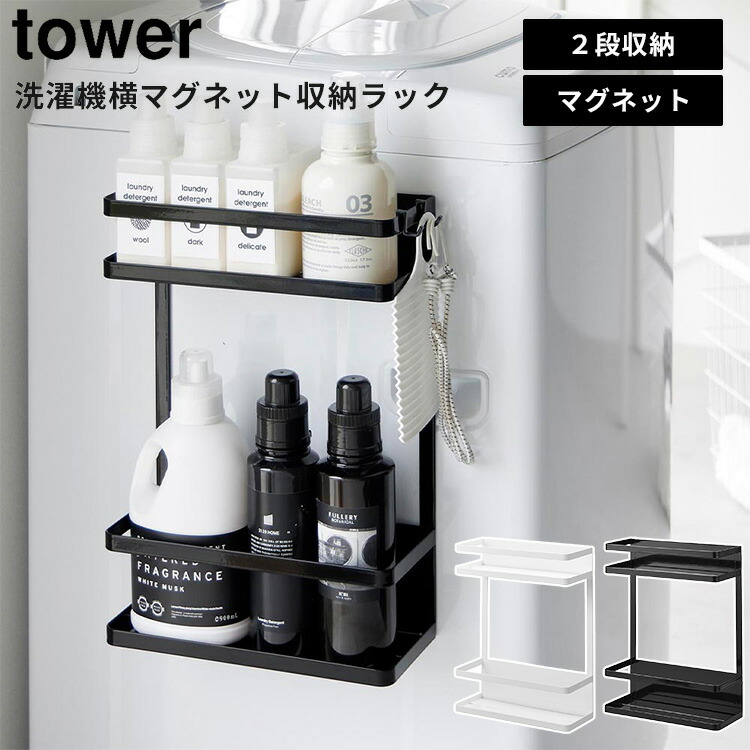 山崎実業 tower 洗濯機横マグネット収納ラック タワー 2段 ランドリーラック 収納ラック 洗濯機 マグネット 収納 洗剤 柔軟剤 洗面所 1800 1801