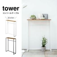 山崎実業 tower コンソールテーブル ホワイト ブラック タワー 収納 台 棚 飾り棚 スリム インテリア フック付き 玄関 木製 スチール 5164 5165 メーカー直送