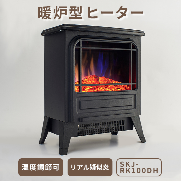 エスケイジャパン 暖炉型ヒーター 温風 温度自動調節 2段階切替 500W 1000W サーモスタット 疑似暖炉炎 ファンヒーター SKJAPAN SKJ-RK100DH メーカー直送