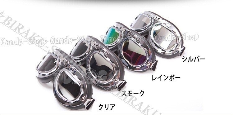ゴーグル 即納 バイク用防風メガネ眼鏡パイロット ゴーグルオートバイメガネおしゃれミラーレンズスキーゴーグル風防付ゴーグル4色自由選択平面タイプ送料無料