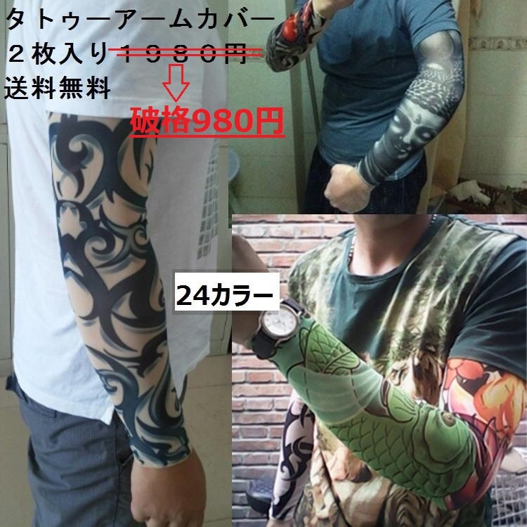 インパクト絶大のタトゥー柄がアームカバーが全24色ラインナップしました。