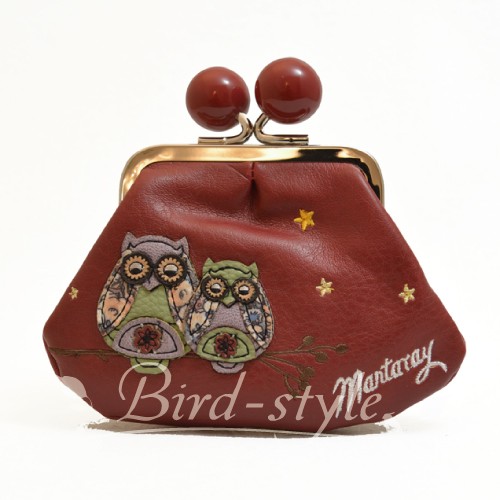 鳥柄 雑貨 グッズ/フクロウの刺繍入りコインパース(がま口) ボルドー