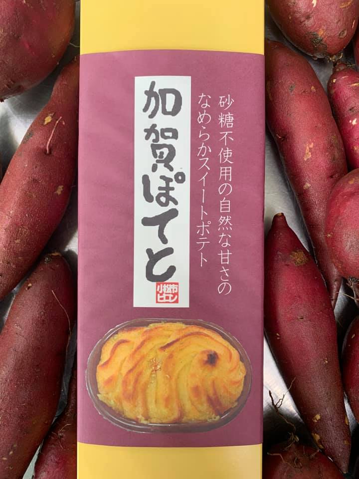 砂糖不使用・無農薬素材・無添加にこだわった唯一無二のさつま芋のスイートポテト。*下記のように砂糖を使わなくても、自然の甘さと美味しさが味わえるこだわりの製法です。(1)地元産の無農薬さつまいもを、約7か月もかけてじっくり熟成(エージング)して、甘さを増していきます。(2)熟成後、長時間かけて蒸し焼きし更に甘みを引き出します。(3)最後の焼成も普段のスイートポテトでしたら、20分くらいですが、この加賀ぽてとは弱火で100分くらいかけて焼き上げ又更に甘みを出していきます。(4)長時間の熟成と焼成で、GI値も低い健康的で安心安全な甘いスイートポテトの出来上がりです。要冷蔵(10℃以下)で3週間の賞味期限です。6個入・・・・・・・・・・2,100円12個入・・・・・・・・・・3,800円(原材料):無農薬さつまいも、生クリーム、バター、卵黄、はちみつ、ラム酒、バニラ、天然塩(栄養成分)1個当たり:熱量178.4Kcal たんぱく質1.35g脂質10.8g 炭水化物18g 食塩相当量0.1g