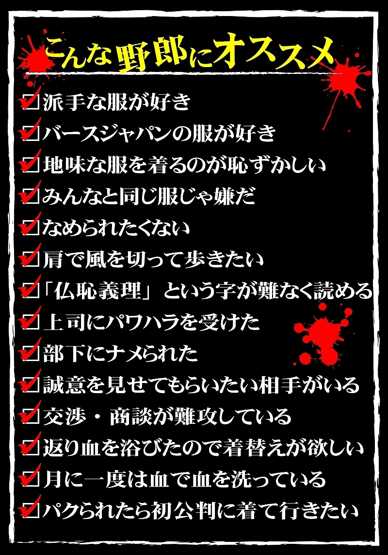 ポイント10倍 服 部屋着 快適 着心地抜群 オラオラ系 悪羅悪羅系 ホスト コスプレ 衣裳 イベント 右翼 ドキュメント 実話時代 雑誌掲載 チョイ悪 チョイワル 大きいサイズ 派手 目立つ プリント アウトローブランド ヤクザ 昭和 平成 ヤンキー オラオラ 悪羅悪羅 昭和 平成 ヤンキー ヤクザ B系 アングラ メンズ 半グレ ヤカラグ 輩ラグ チンピラ 不良 暴走族 服 父の日 プレゼント ギフト