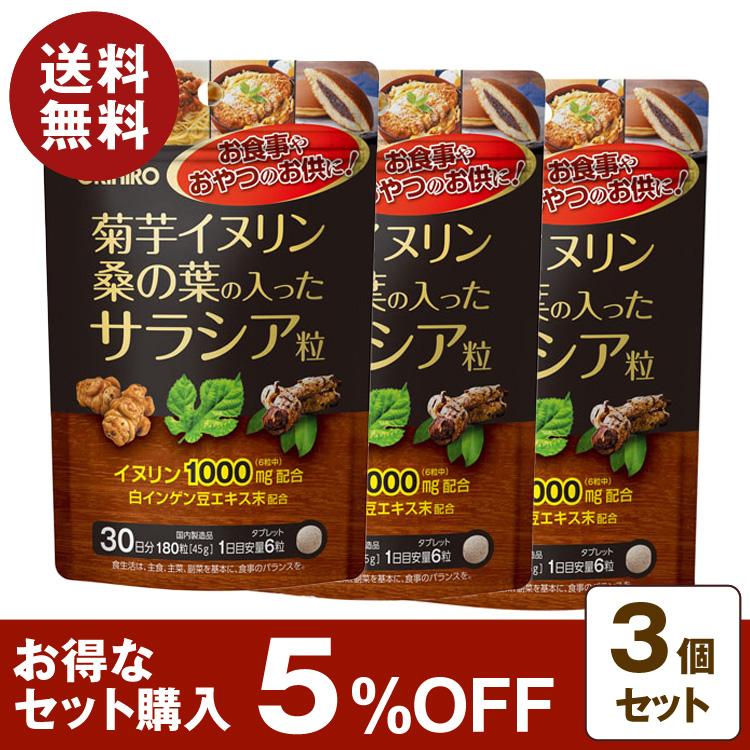 菊芋イヌリン桑の葉の入ったサラシア粒 180粒 30日分 3個セット 5%OFF 白インゲン豆エキス 桑の葉エキス末 食物繊維 善玉菌 食生活 サプリ 【クリックポスト】