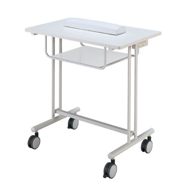 ミニネイルキャスターテーブルは、天板下にUVランプや道具が置ける棚板(高さ150mm)付きキャスターテーブルです。