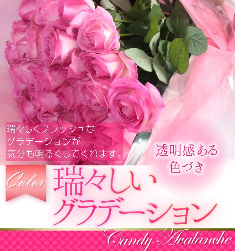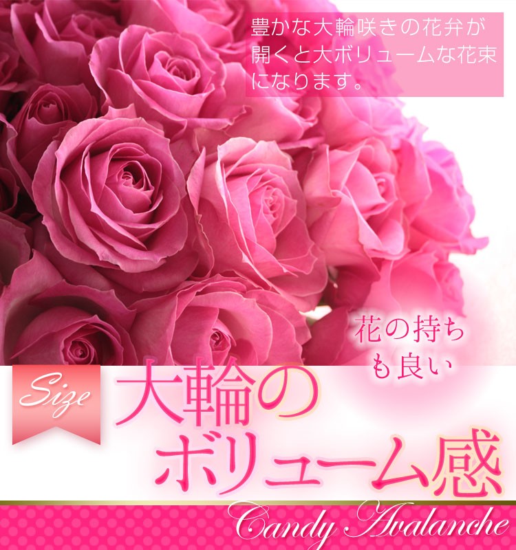 ○希少品種のキャンディアバランチェが入荷!30本花束です。徐々に開いてくるとボリューム感もある花束に。 ○カスミソウ1本・・・+300円で追加できます。キャンディアバランチェで考えるとすれば、30本の花束で3本から4本のご使用をお勧めいたします。 ※別途「カスミソウ」からお買い求め下さい。 ○送料は無料です。 (ただし、九州は別途6460、沖縄本島は別途1,980円、沖縄本島以外及び離島は別途2,200円かかります) | |