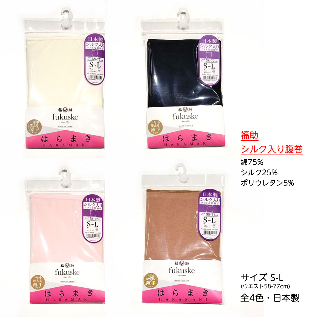 福助 シルク入り腹巻き 薄手 S-L 全4色 主成分綿 冷え対策 レディース ハラマキ メール便送料無料