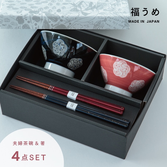 福うめ夫婦茶碗ギフトセット 結婚祝い プレゼント 夫婦茶碗 ラッピング 食器セット 2人用 波佐見焼 夫婦箸 食洗機 レンジ ビスク
