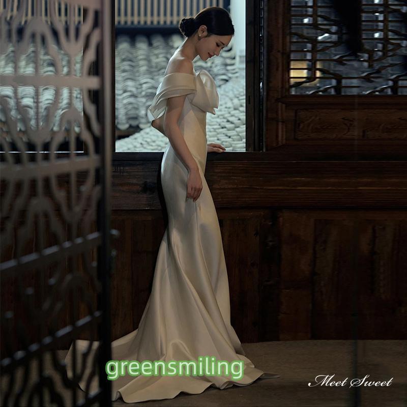 ウェディングドレス ウエディングドレス ロングドレス 二次会 結婚式 前撮り ブライダル 花嫁 オフショルダー ファスナー サテン トレーン シンプル
