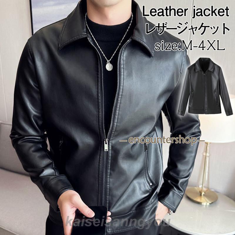 レザージャケット メンズ 革ジャン ライダースジャケット 秋冬 アウター 厚手 折り襟 防寒 防風 PU かっこいい バイク お兄系 ロック系 韓国風
