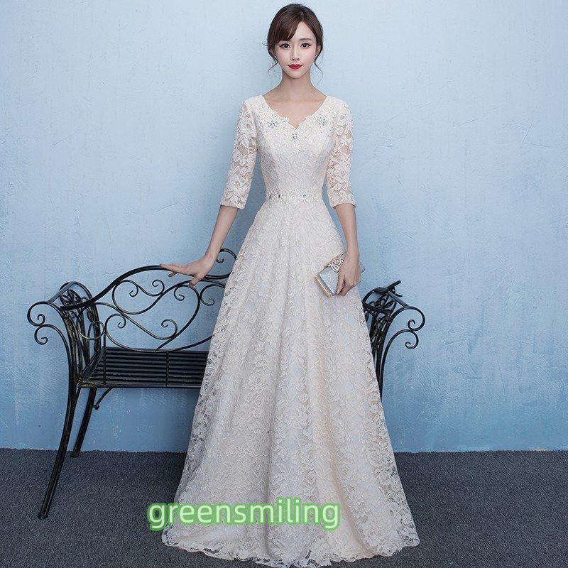 ウエディングドレス aライン 白 格安 袖あり レース ウェディングドレス 花嫁 結婚式 パーティードレス 二次会 ブライダル ロングドレス イブニングドレス