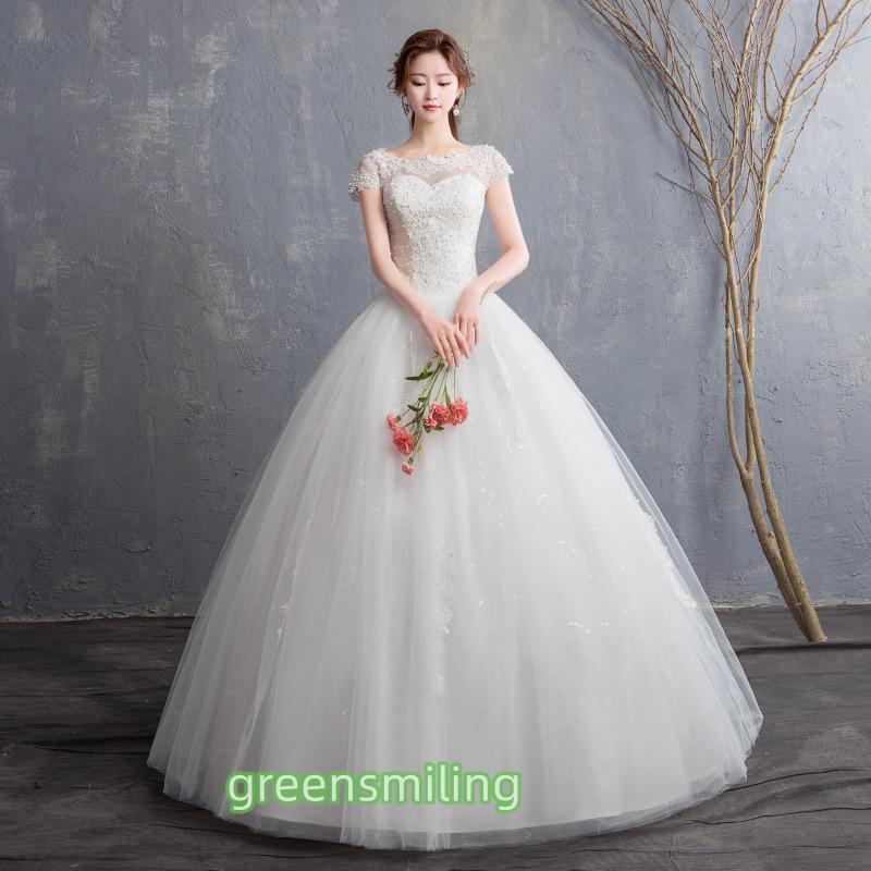 ウェディングドレス XXS-XXXL 二次会 結婚式 披露宴 ブライダル ロングドレス 半袖 花嫁 ウエディングドレス プリンセスライン オフホワイト 編み上げ 安い