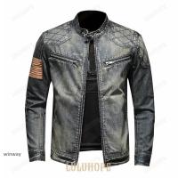 デニムジャケット メンズ Gジャン ダメージ ビンテージ加工 デニム ジージャン アメリカ国旗柄 トップス スリム カジュアル バイクウェア 春秋