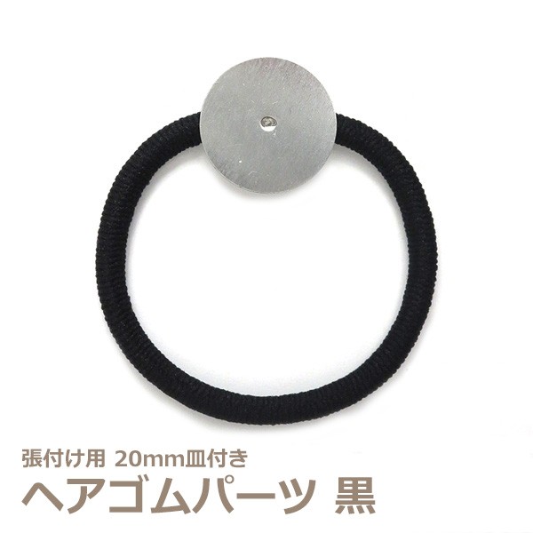 張付け用 20mm皿付きヘアゴムパーツ 太ゴム黒 |レジンアクセサリー用パーツ つまみ細工用パーツ ハンドメイド用 手芸