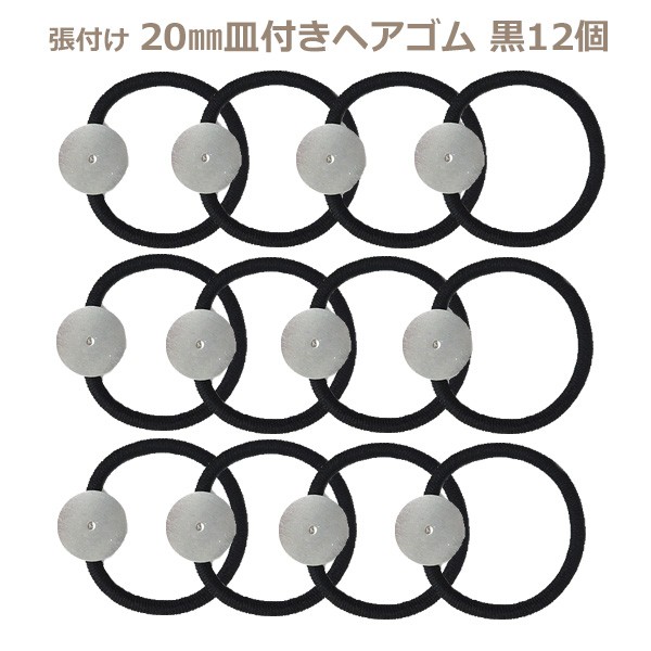★12個まとめ買い★張付け用 20mm皿付きヘアゴムパーツ 太ゴム黒 |レジンアクセサリー用パーツ つまみ細工用パーツ ハンドメイド用 手芸