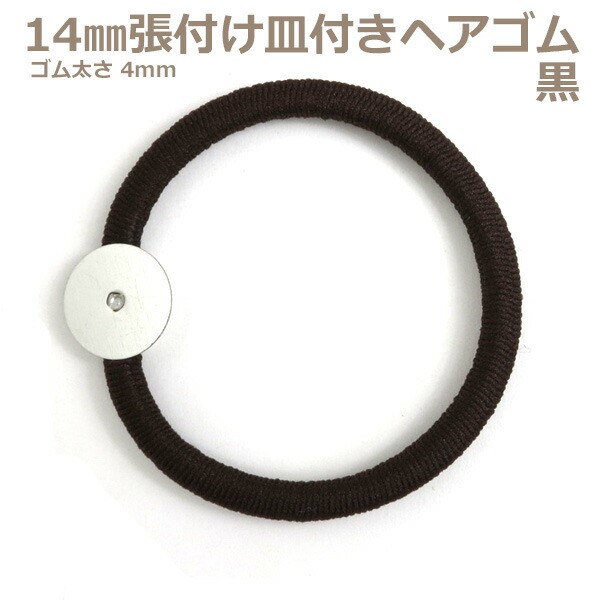 張付け用 14mm張付け皿付きヘアゴムパーツ 太ゴム黒 |レジンアクセサリー用パーツ つまみ細工用パーツ ハンドメイド用 手芸