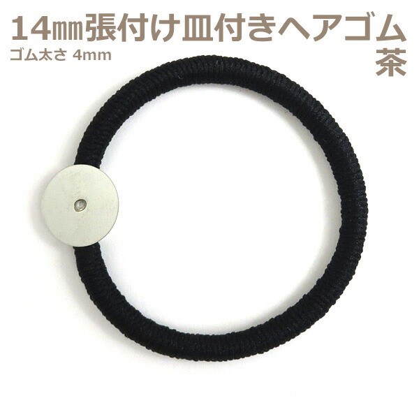張付け用 14mm張付け皿付きヘアゴムパーツ 太ゴム茶色 |レジンアクセサリー用パーツ つまみ細工用パーツ ハンドメイド用 手芸