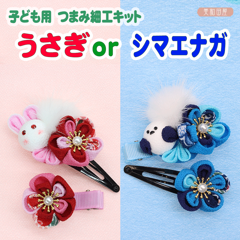 つまみ細工キット うさぎとシマエナガ 子ども用 髪飾り 選べるキット|帯飾り 袴飾り 七五三 ちりめん細工キット 初心者 手芸
