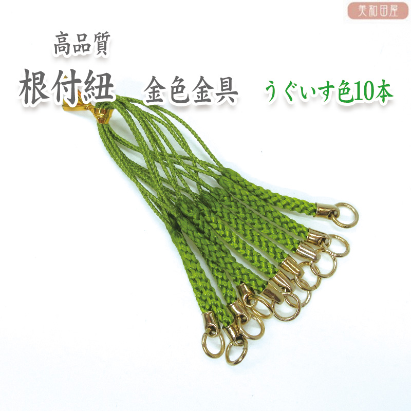 根付紐 金金具 うぐいす色 10本セット 国産高品質! / レジンパーツ 帯飾り つまみ細工 ストラップ 和小物 和風パーツ 手芸 ハンドメイド