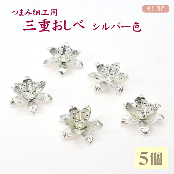三重おしべ【華】シルバー色 5個 直径16mm | つまみ細工 材料 アクセサリーパーツ 髪飾り 資材 手芸 花芯 花座