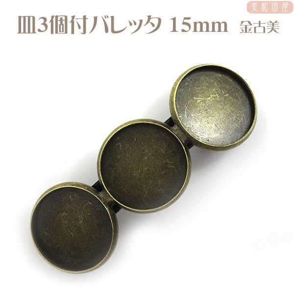 皿3個付バレッタ 皿径15mm 金古美 // ヘア金具/土台/レジン/つまみ細工/手芸/