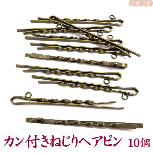 カン付きねじりヘアピン 10個 金古美 / レジン つまみ細工 手作り材料 ヘア金具 ヘアアクセサリー 髪留め ハンドメイド 手芸