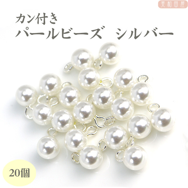 つまみ細工用 カン付きパールビーズ8mm シルバー色金具 20個 |藤下がり 下がり飾り 鈴 つまみ細工 つまみ細工材料 チャーム パーツ 手芸