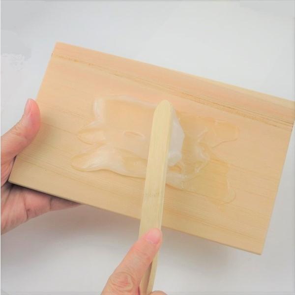 使い終わった後ぬるま湯で糊を流す・・・檜の板のよい香りがいたします