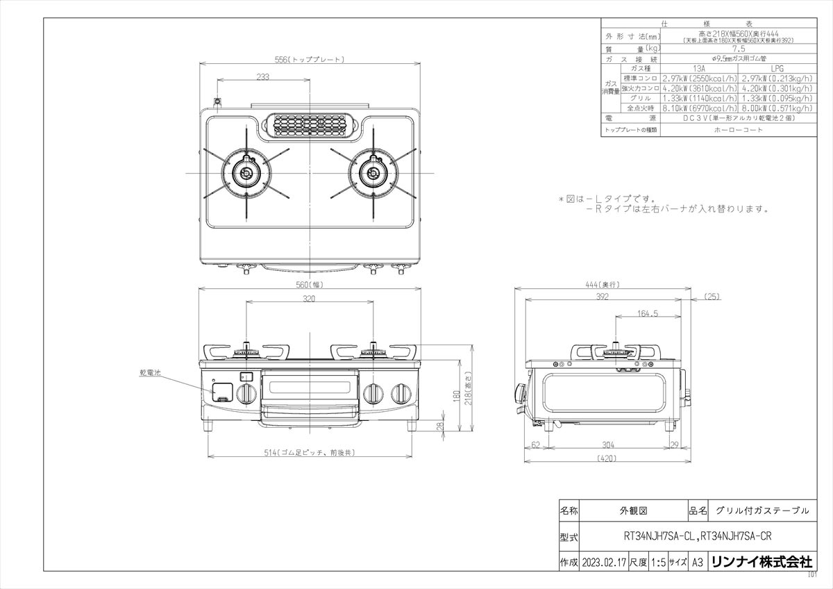 【RT34NJH7SA-CR】 リンナイ グリル付ガステーブル яб∀