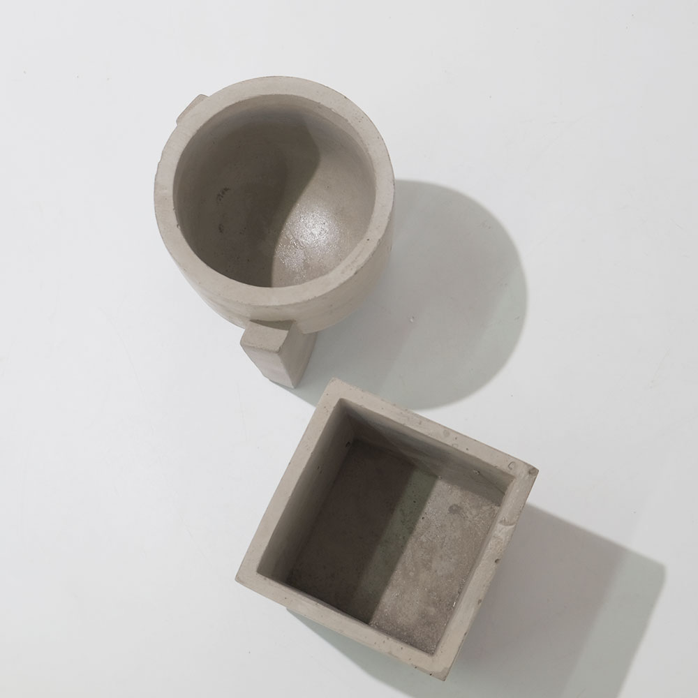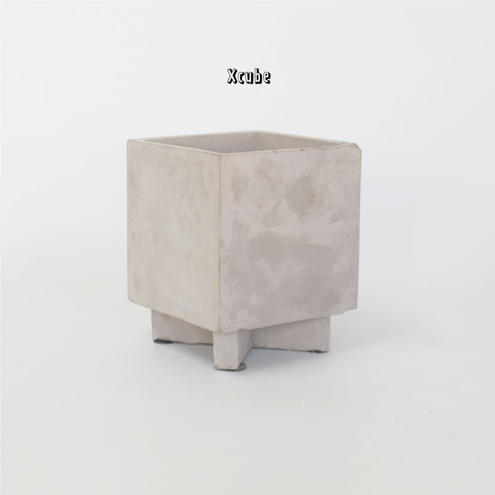 ラウンド、キューブ型セメントポットにユニークな高台をつけた鉢カバー