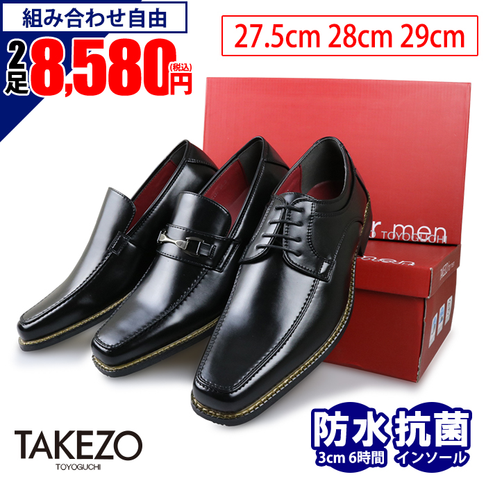 ビジネスシューズ メンズ 大きいサイズ 28cm 29cm 防水 防滑 ローファー 2足セット 革靴 TAKEZO スリッポン