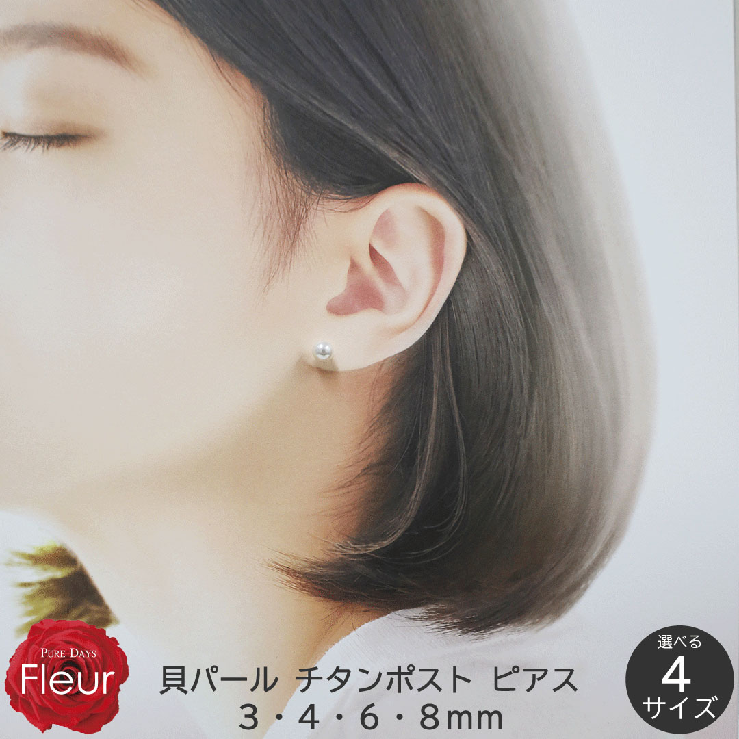 ピアス レディース パール 貝パール 真珠 3mm 4mm 6mm 8mm ホワイト 白 チタンポスト シルバー 冠婚葬祭 フォーマル カジュアル