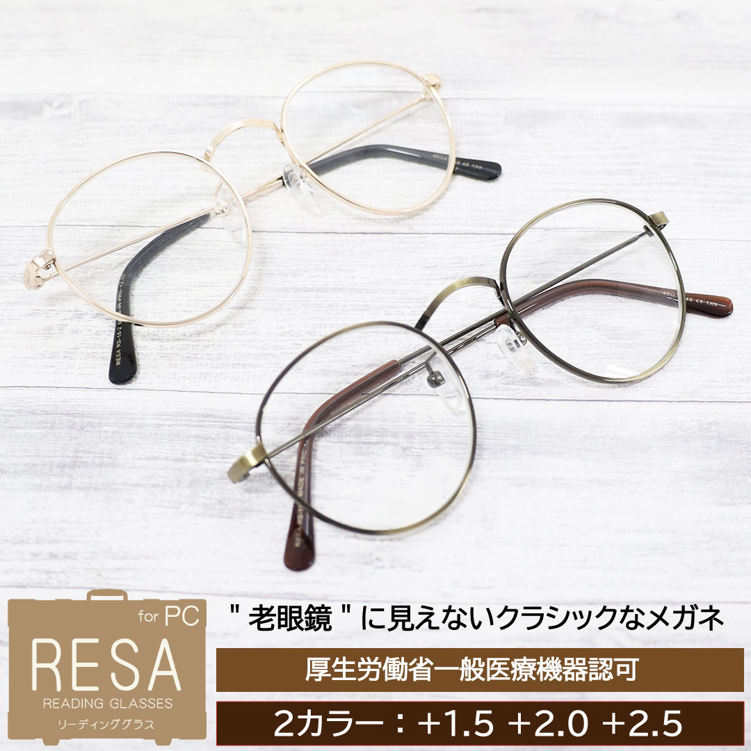 リーディンググラス 老眼鏡 おしゃれ ブルーライトカット リーディングメガネ 1.5倍 2倍 2.5倍 アンティーク ゴールド ブラウン 茶