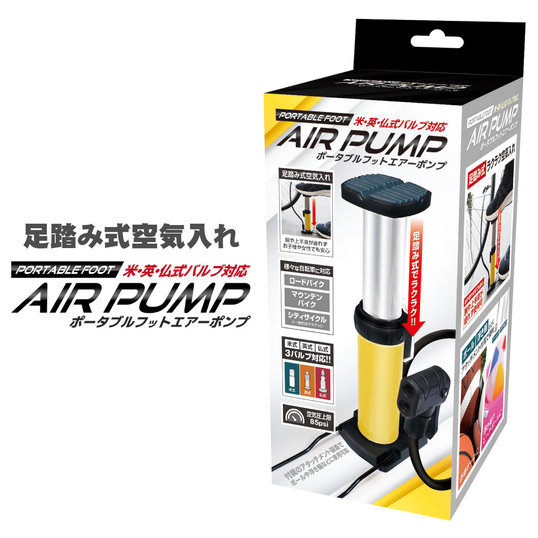 空気入れ 自転車 足踏み式 エアーポンプ サイクルポンプ フット式 仏式 英式 米式 ロードバイク マウンテンバイク ボール プール 浮き輪 小型 軽量