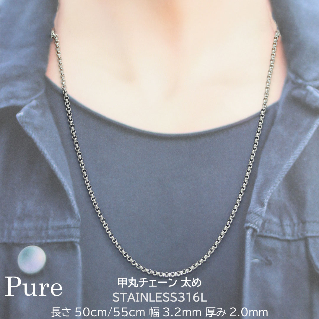 メンズネックレスチェーン レディースネックレスチェーン ステンレス 甲丸 チェーン 50cm 55cm シルバー メンズ レディース 金属アレルギー 対応