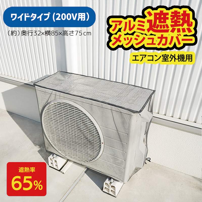 200V用 ワイドタイプ エアコン室外機カバー メッシュ 大型 虫よけ 日よけ 室外機シート アルミ 遮熱シート 室外機アルミカバー 室外機日よけ 328628-02