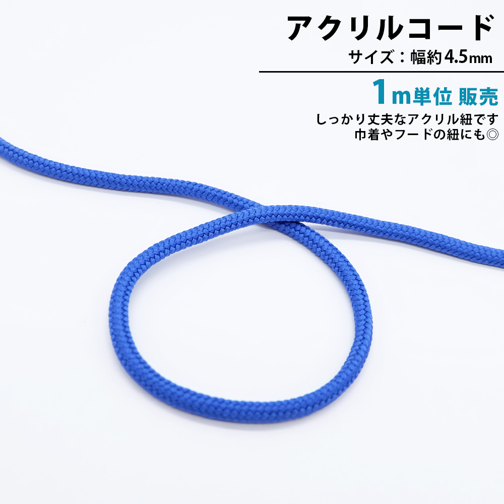 アクリルコード アクリル紐 アクリルひも スピンドル 入園・入学準備 手芸 ハンドメイド 巾着用 ひも 幅 4.5mm