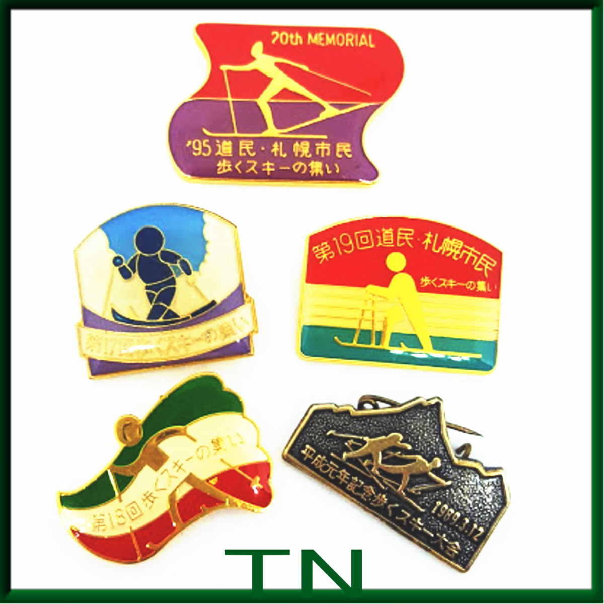 送料無料≫北海道 道民・札幌市民 歩くスキーの集いetc ☆バッジ 5個セット A00374