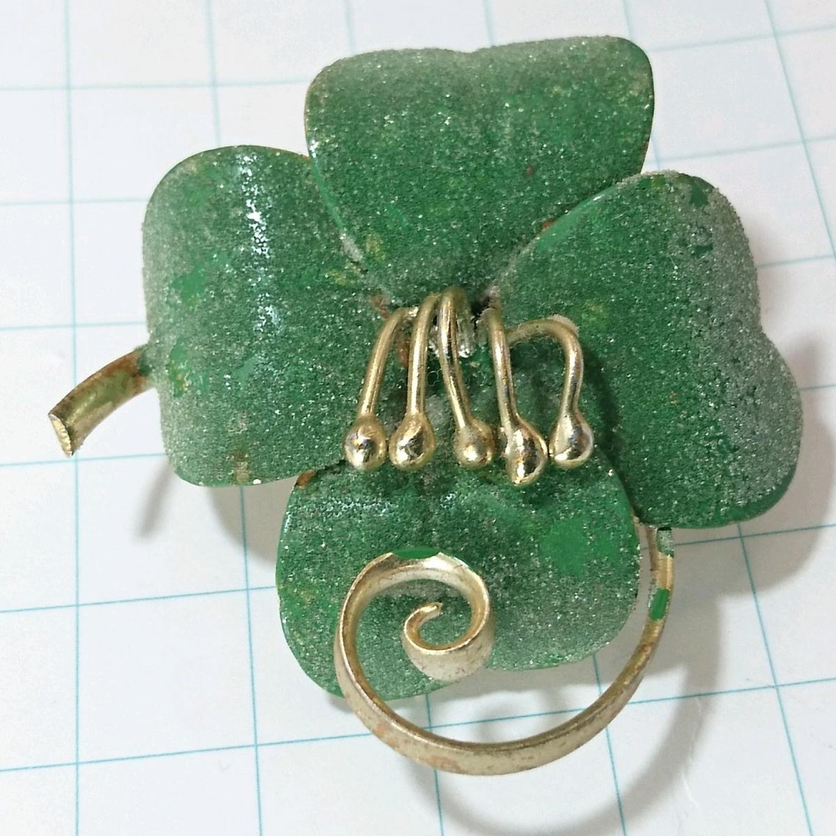 送料無料)ビンテージ☆四つ葉のクローバ☆アンティークブローチ A09053