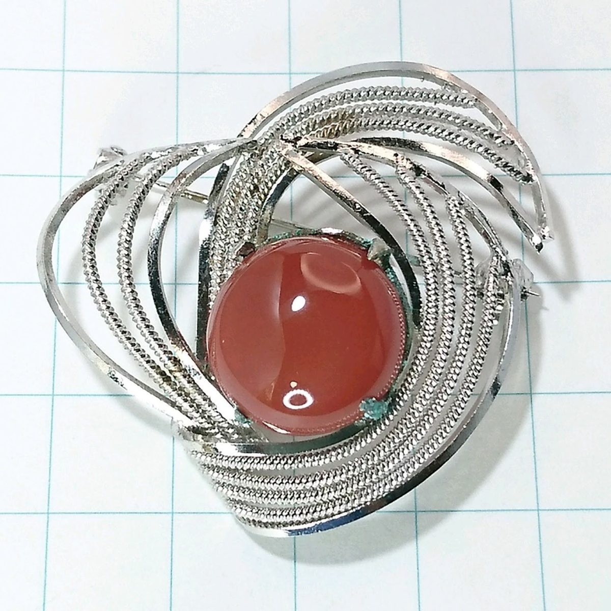 送料無料)ビンテージ☆レッドブラウンストーン☆アンティークブローチ A09909